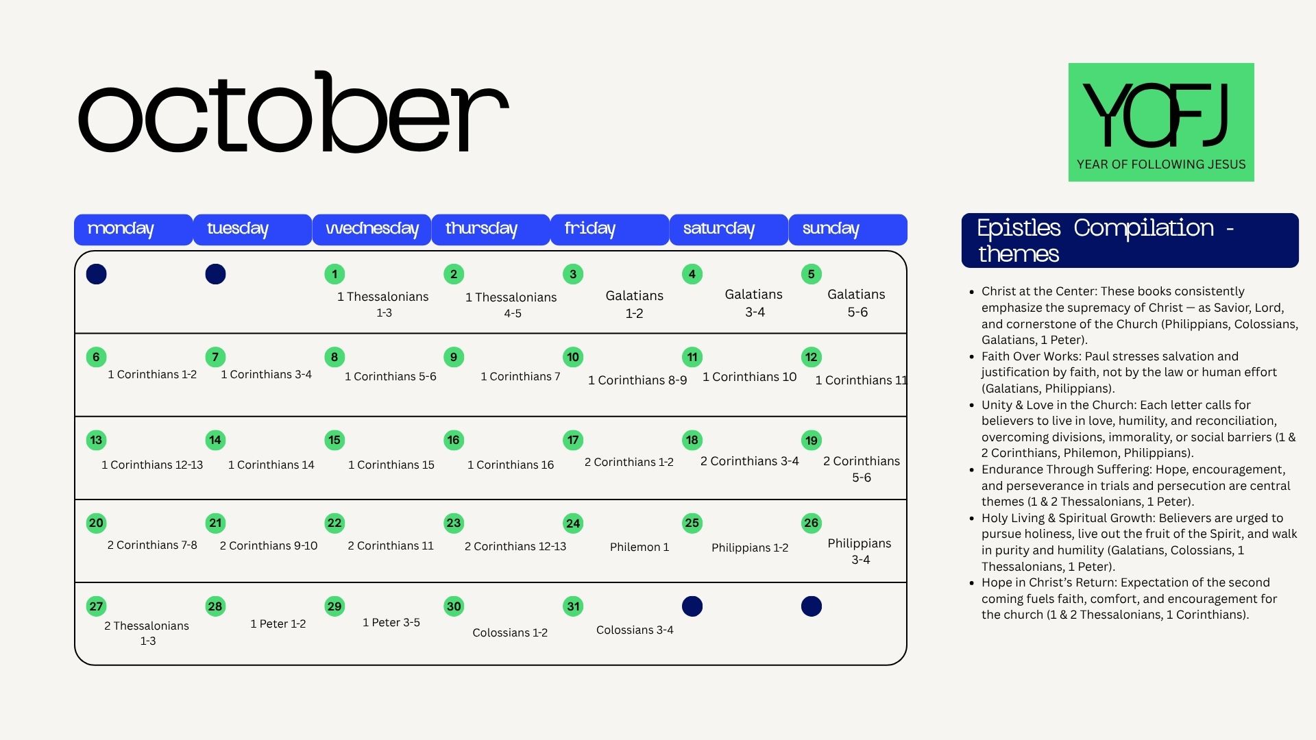 OCTOBER Reading Overview with Ps JC Stephenson