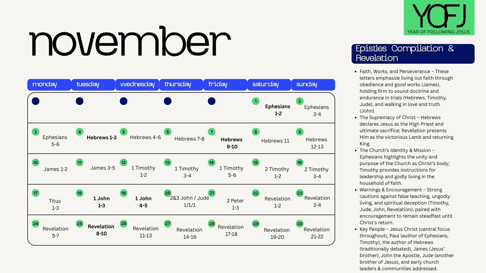 October Bible Reading Plan November Bible Reading Plan December Bible Reading Plan