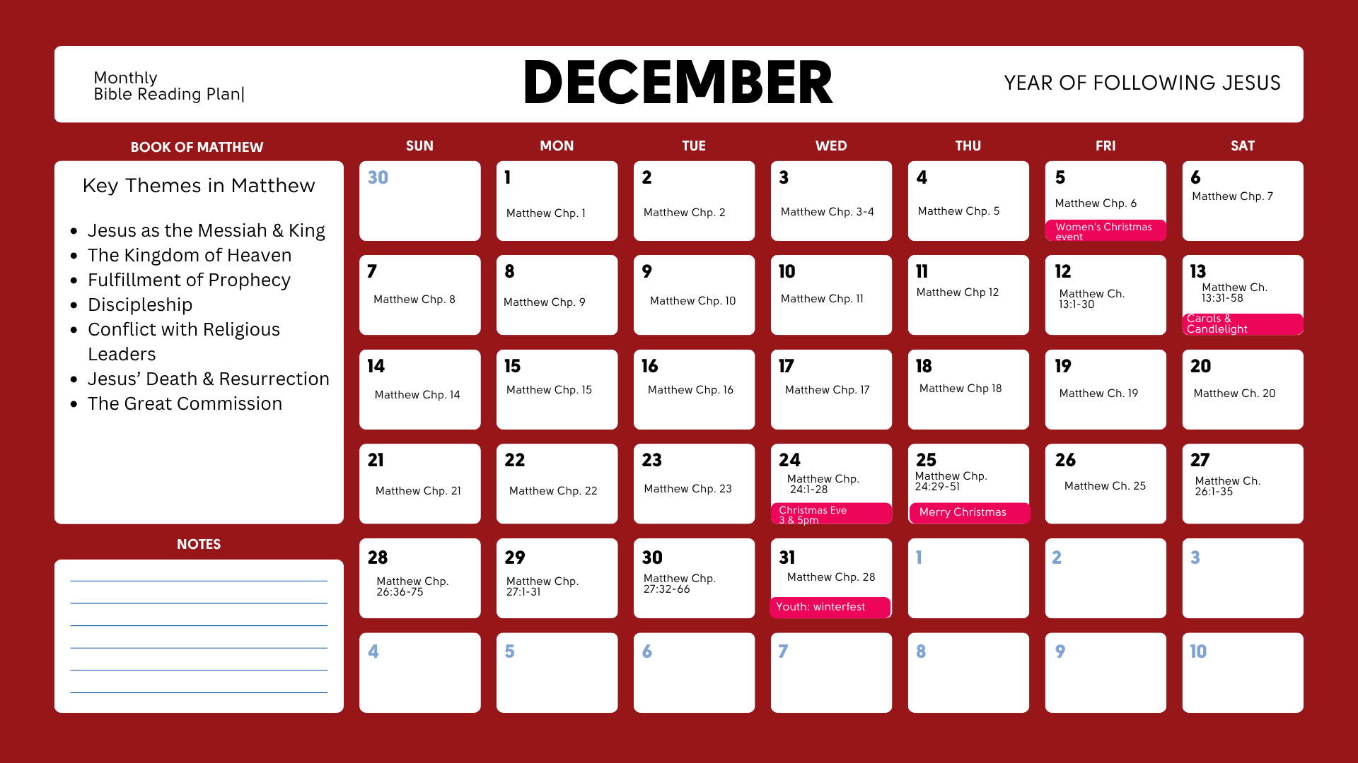Have you ever asked, Is this all there is? Is there more to life than this? The Gospel reminds us that we were meant to live for so much more. More than the daily grind, more than fleeting pleasures—we were created for a life of freedom, purpose, and joy. What if this year, you answered the call of Jesus, stepping fully into His invitation to follow Him? In "The Year of Following Jesus", we're inviting you to embark on a church-wide journey of discipleship in 2025. Through curated curriculum, sermon series, and Bible reading plans, we'll explore three rhythms: Being with Jesus, Becoming like Jesus, and Doing what Jesus Did.